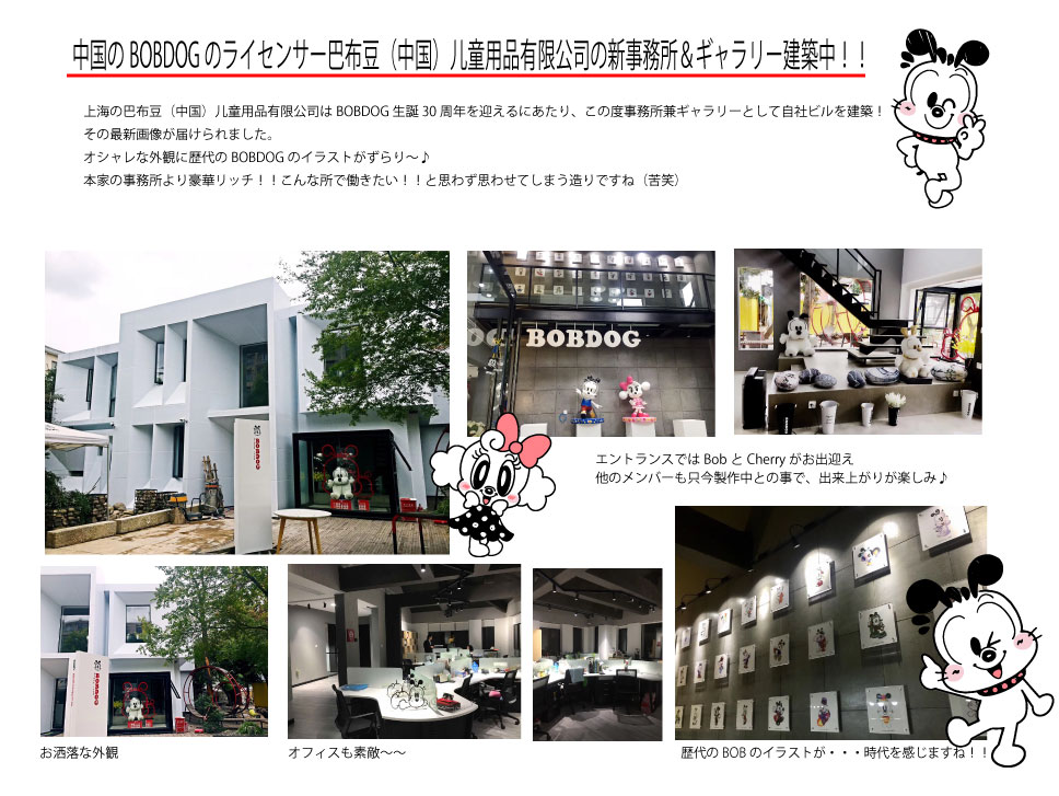 2018年1月22日〜1月28日の一週間サンワードのボブドッグ担当デザイナー達が上海の巴布豆(中国)児童用品有限公司の新事務所にて生誕30周年に向けての今後のBOBの方向性やデザインの打ち合わせをしてきました。詳しい報告は こちらをご覧ください。